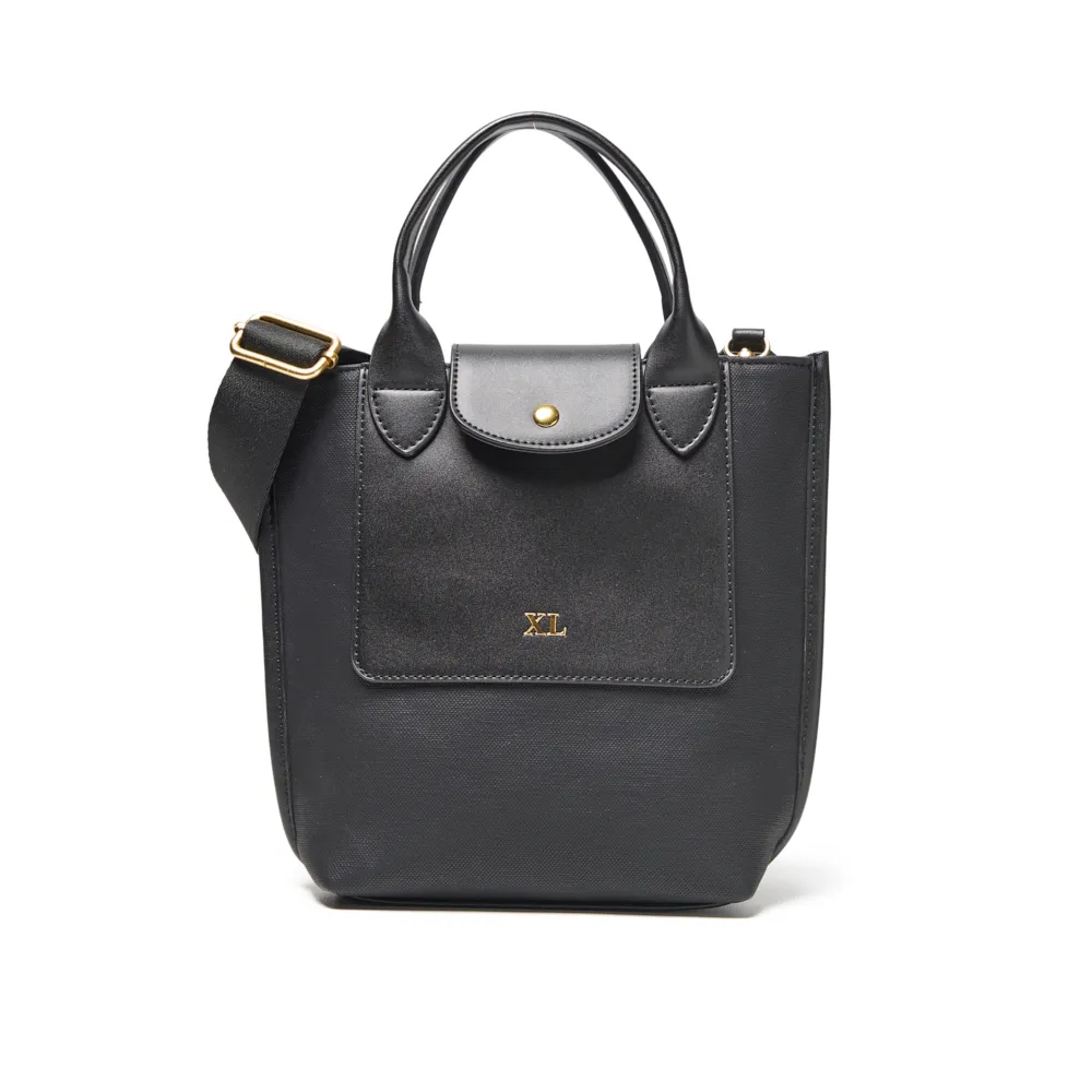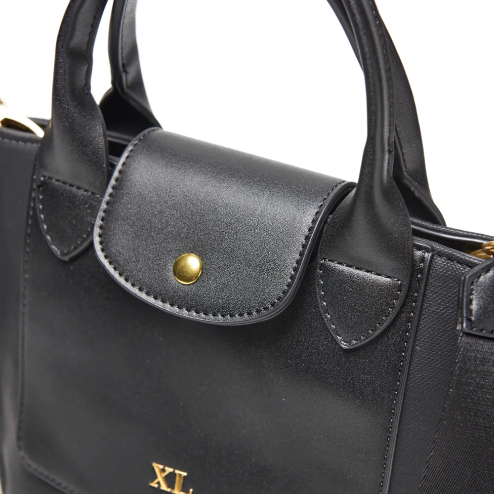 Correa larga desmontable y regulable para uso al hombro o cruzado.